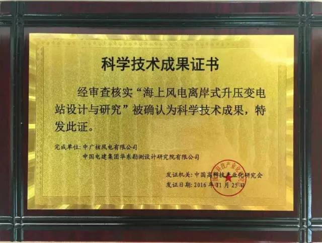 12月8日,中廣核新能源受托管理的海上風電項目江蘇如東海上風電場150MW示范項目榮獲由中國機械工業聯合會、中國高科技產業化研究會聯合鑒定通過的8項科技成果。