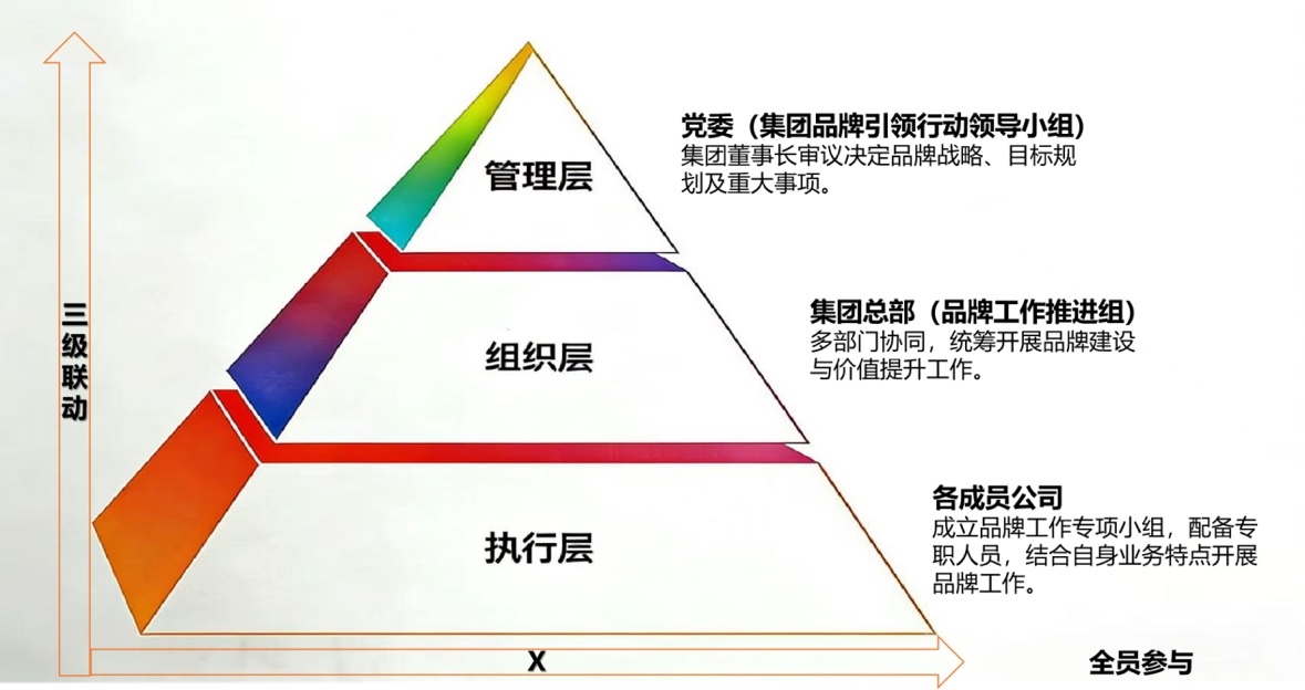 “3+X大品牌工作體系”的“3”即三級(jí)聯(lián)動(dòng)體系,涵蓋管理層、組織層、執(zhí)行層,實(shí)現(xiàn)集團(tuán)總部與各成員公司全覆蓋,形成領(lǐng)導(dǎo)有力、目標(biāo)明確、重點(diǎn)突出、執(zhí)行有力的品牌管理保障體系。