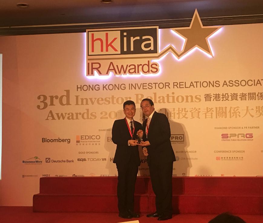 The "Investor Relations Awards" was organized by HKIRA since 2015 to recognize the outstanding performance of Hong Kong listed companies and related personnel in investor relations. The Most Progress in IR Award, a new award added to the competition this year, honors listed companies that have made outstanding progress in investor relations over the past year. It follows a strict process of nomination by public networks, online voting by analysts and a final voting by the professional Judging Panel.