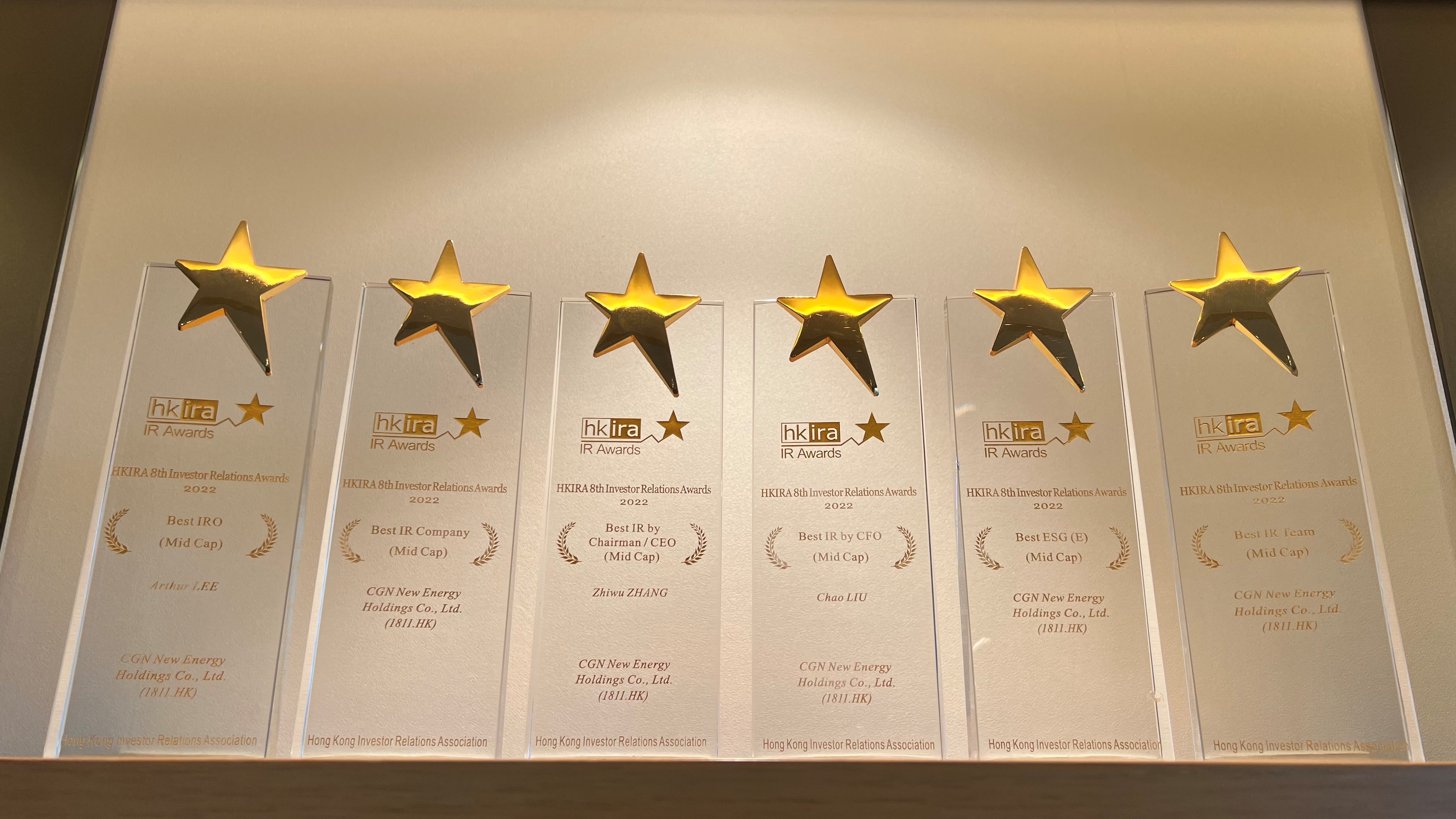 On 15 September, the prize-awarding ceremony of the 8th Investor Relations Awards (“IR Awards”) hosted by the Hong Kong Investor Relations Association (“HKIRA”) was held in Conrad Hong Kong. CGN New Energy (1811. HK) stood out among many selected enterprises. It won the two awards of “Best IR Company” and “Best ESG (Environment)”.